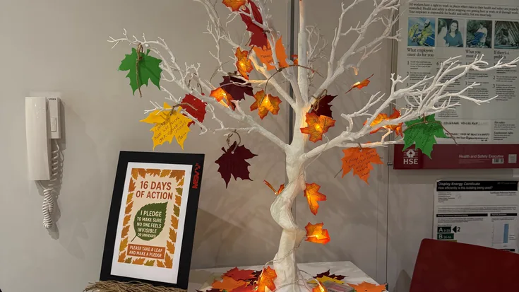The team has created a Tree of Action, an interactive artwork that invites anyone visiting or working with GDASS to write a personal pledge on a leaf and place it on the tree. The aim is simple: encourage ongoing reflection, commitment, and awareness around domestic abuse.